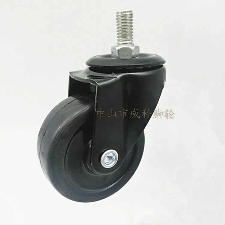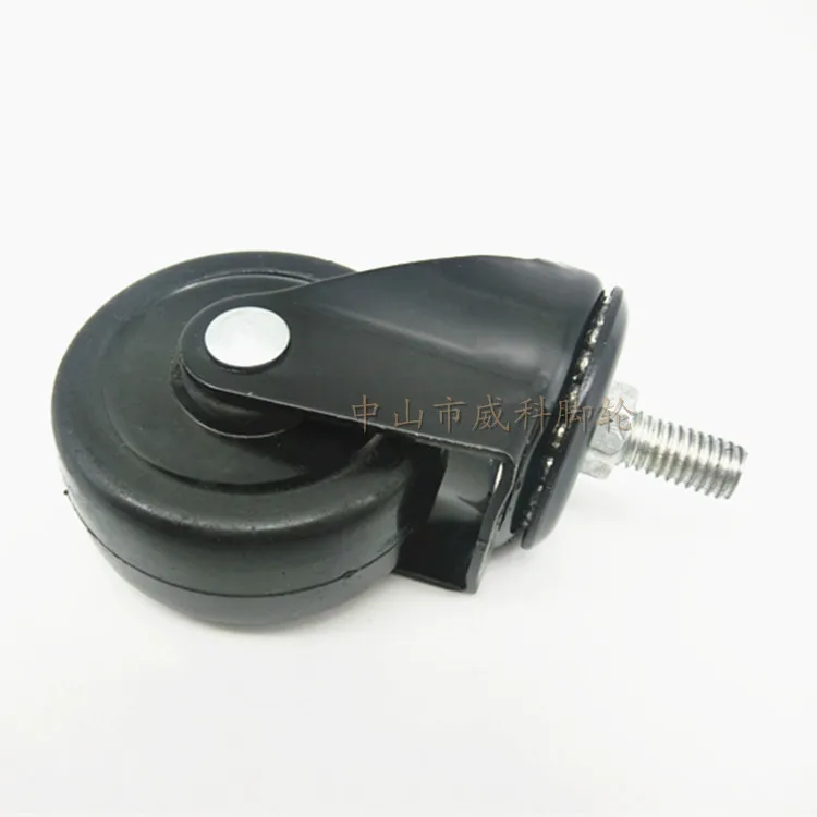 Metal Roller Light 2-Inch Pure Black Electrophoresis Rubber Wheel Screw M10 Tool Car Rubber Truckle