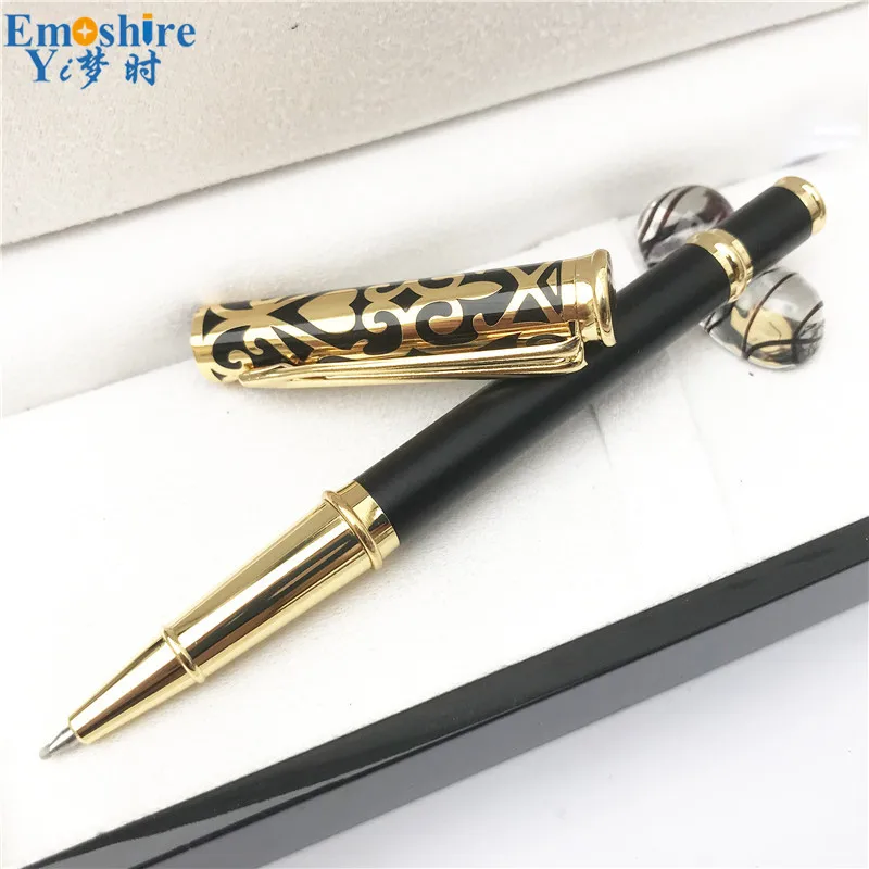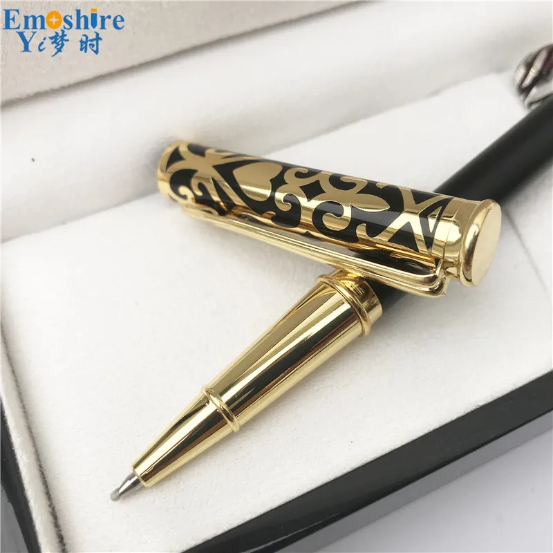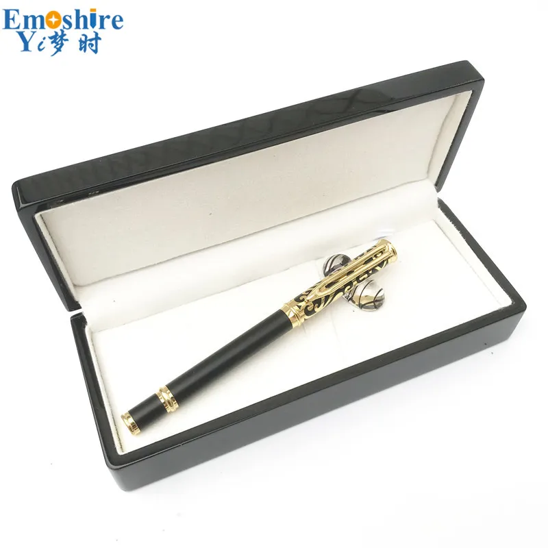 Emoshire Fashion New Year Gift for Dad Husband Golden Hollow Pen Gift Set with Wooden Box Wood Roll